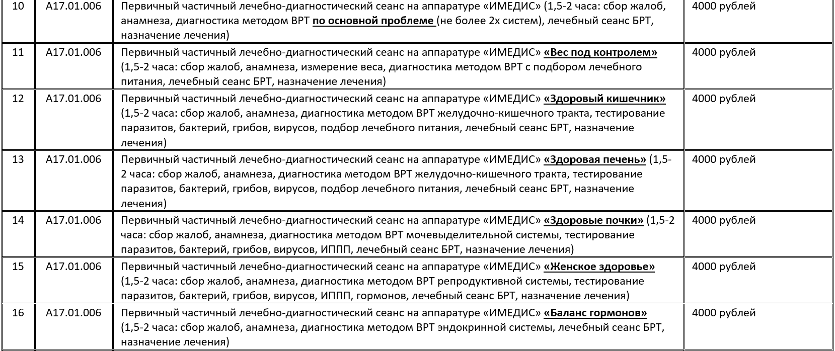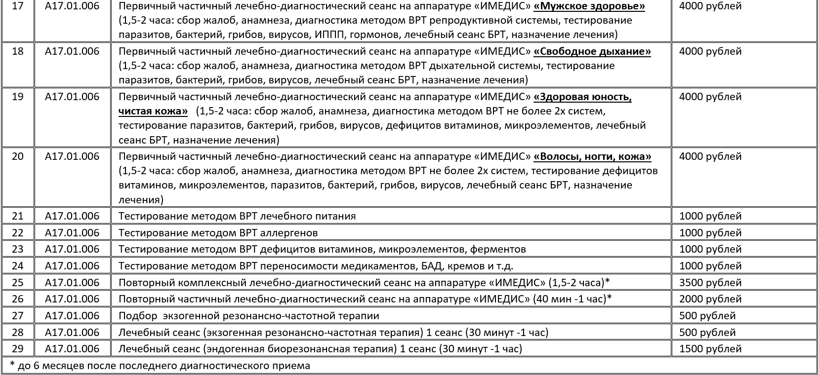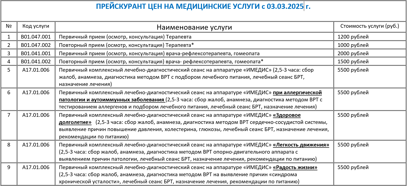 Прейскурант цен на медицинские услуги с 03.03.2025г